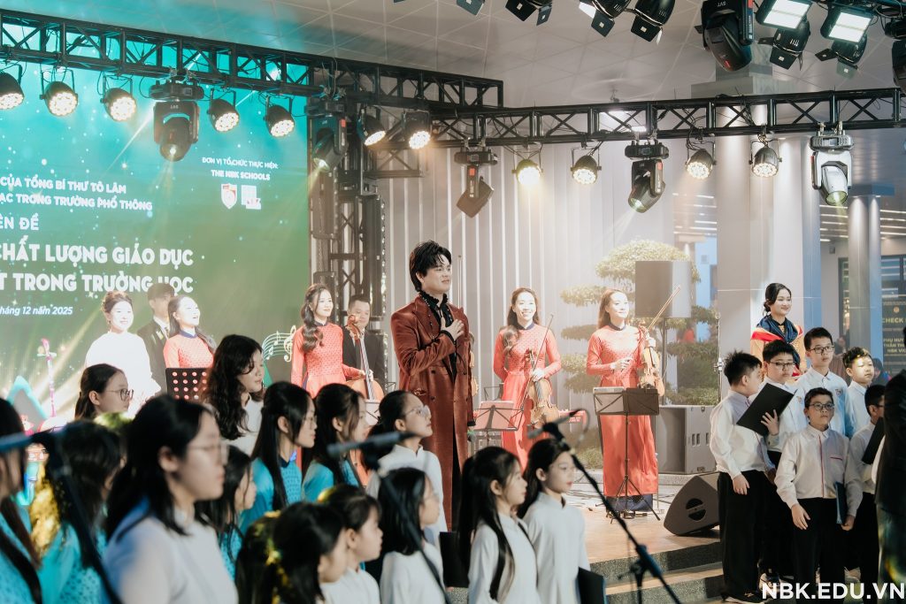 Thực hiện ý kiến chỉ đạo của Tổng bí thư Tô Lâm về việc đổi mới dạy học âm nhạc – nghệ thuật trong trường phổ thông, vừa qua, chuyên đề & chương trình biểu diễn nghệ thuật đặc sắc: “Giải pháp nâng cao chất lượng giáo dục Âm nhạc – Nghệ thuật trong trường học” đã diễn ra thành công tốt đẹp. The NBK Schools xin gửi lời tri ân sâu sắc đến Quý vị đại biểu, Quý phụ huynh, các thầy cô, học sinh và toàn thể khán giả đã đồng hành, lan tỏa những giá trị nghệ thuật đích thực.