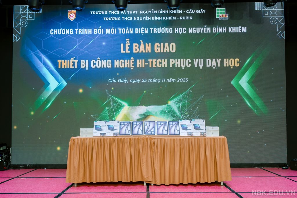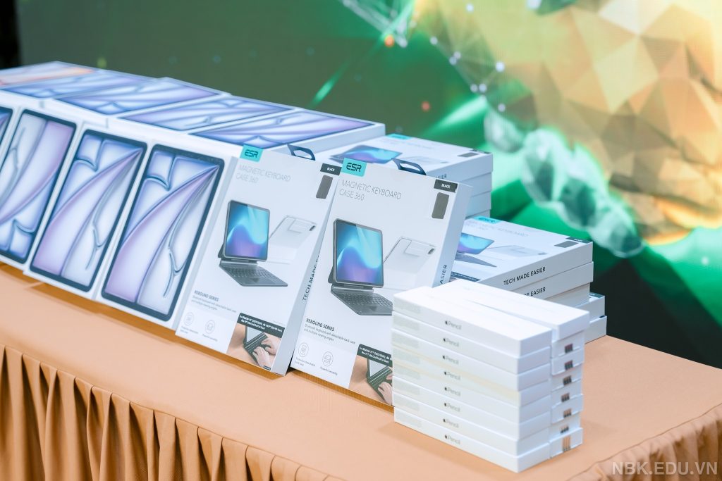 Hành trình chuyển đổi số tại The NBK Schools vừa ghi nhận thêm một bước tiến đầy hứng khởi khi những thiết bị công nghệ dạy học hiện đại nhất – bao gồm iPad Air M3, Apple Pencil và Magic Keyboard – đã chính thức được trao đến tận tay các thầy cô giáo trường THCS Nguyễn Bỉnh Khiêm – Rubik, khối THCS & khối Song Ngữ trường THCS&THPT Nguyễn Bỉnh Khiêm – Cầu Giấy. Đây là sự đầu tư trọng điểm, khẳng định quyết tâm không ngừng nâng cao chất lượng đào tạo trong bối cảnh mới.