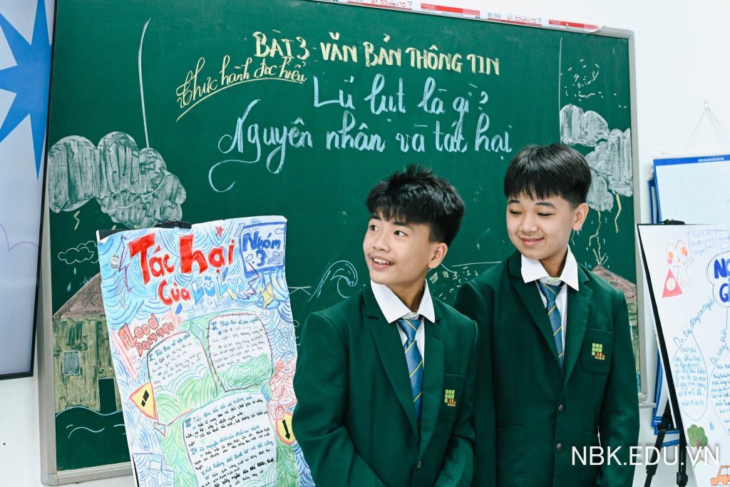 Điểm đặc biệt của tiết học là cách kiến thức được mở rộng ra ngoài trang sách. Khi cùng nhau phân tích nguyên nhân gây lũ lụt, tác hại của thiên tai và thảo luận những giải pháp ứng phó, bài học dần gắn kết với những câu chuyện đời sống, với tinh thần sẻ chia và trách nhiệm cộng đồng mà học sinh NBK Rubik vẫn đang nuôi dưỡng mỗi ngày.