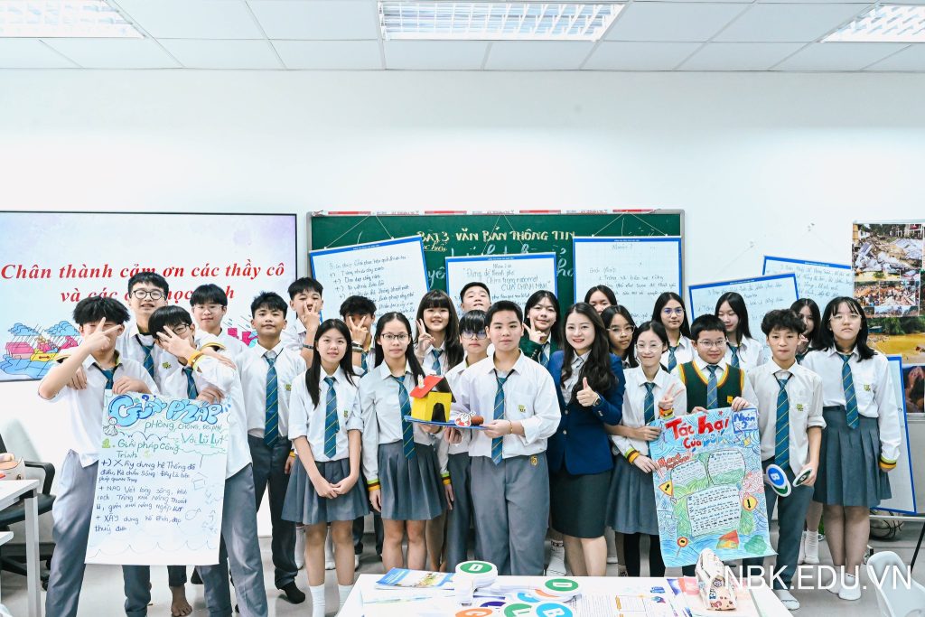Điểm đặc biệt của tiết học là cách kiến thức được mở rộng ra ngoài trang sách. Khi cùng nhau phân tích nguyên nhân gây lũ lụt, tác hại của thiên tai và thảo luận những giải pháp ứng phó, bài học dần gắn kết với những câu chuyện đời sống, với tinh thần sẻ chia và trách nhiệm cộng đồng mà học sinh NBK Rubik vẫn đang nuôi dưỡng mỗi ngày.